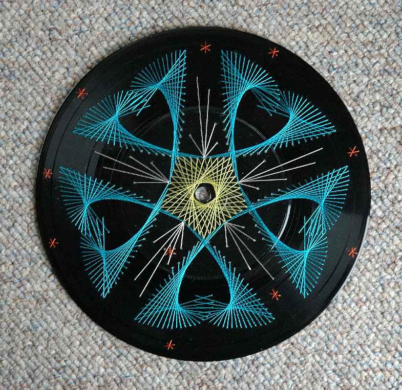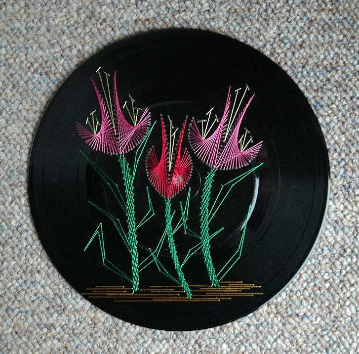 We painted the label of the record black, because it is impossible to remove it on the record we used flower 93 We enlarged the pattern to fill the whole record. |